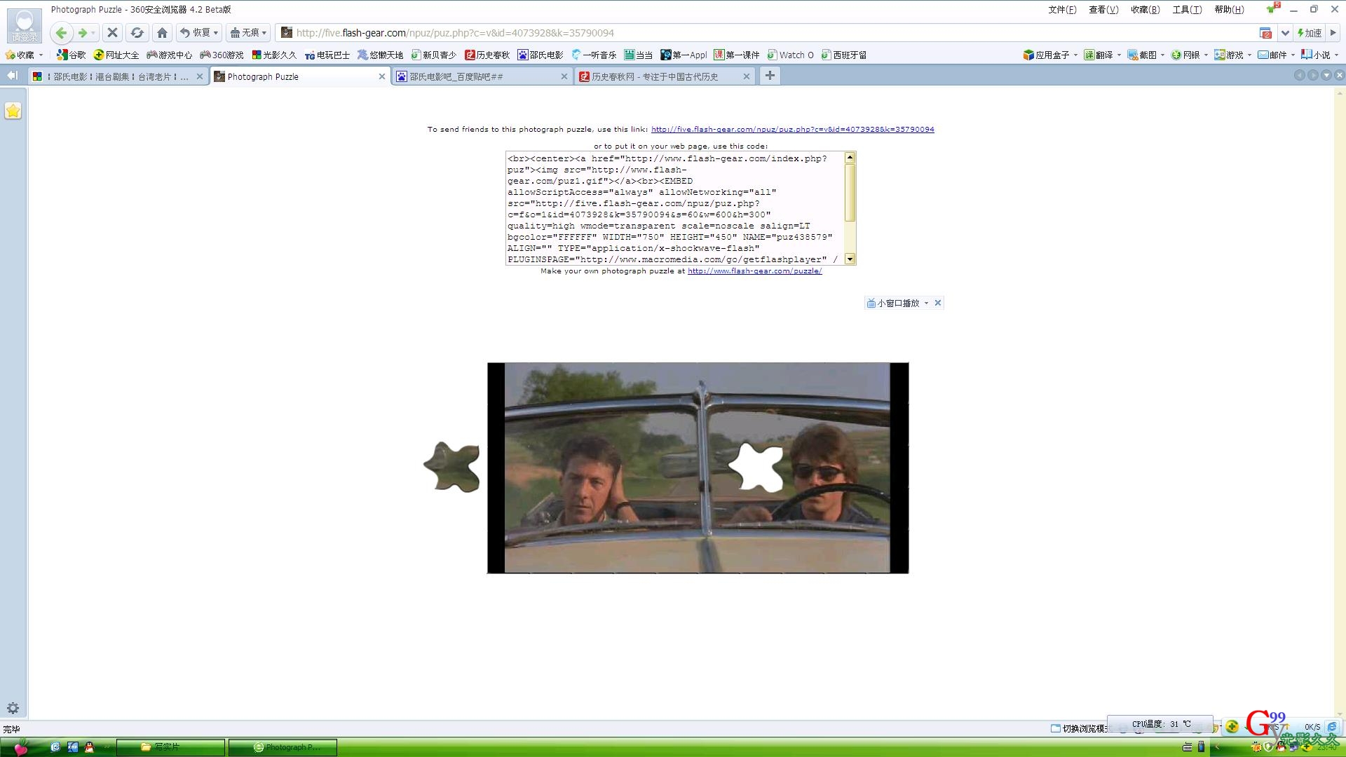 1. 完成上面网址的拼图,保留最后一片不要拼,然后截图上传并回答图片中的電影主角患了什麼病?