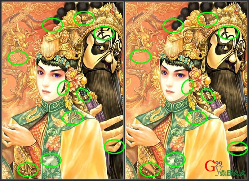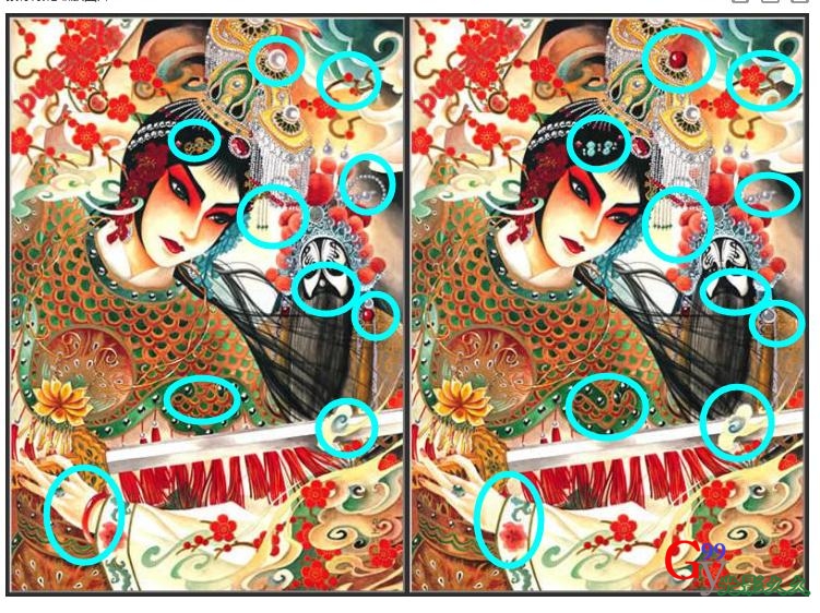 第二张有一处不同在女人的头花那里,因为是我用的是黑圈可能不太明显。