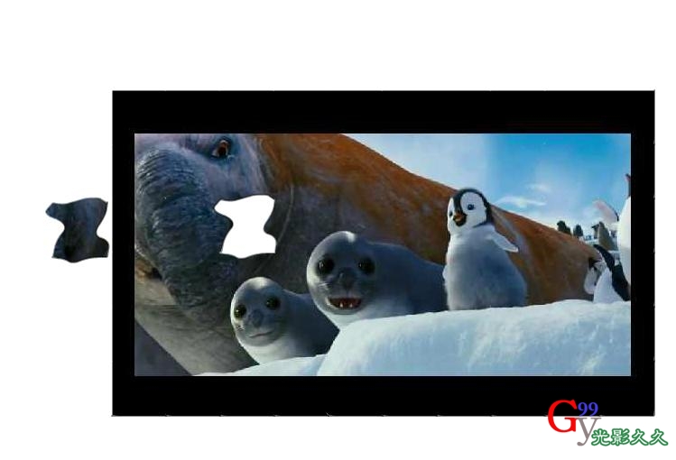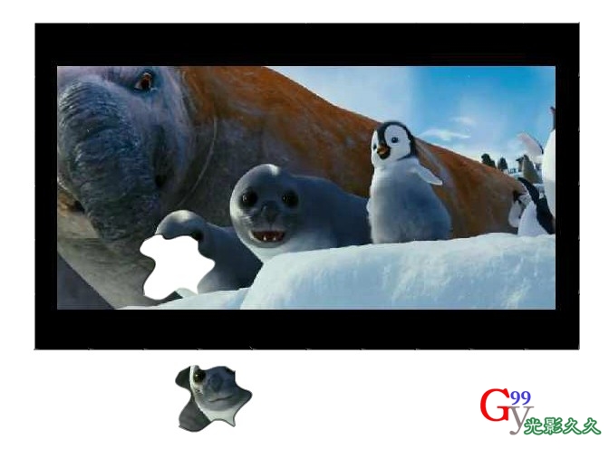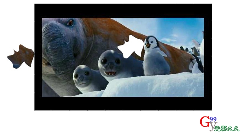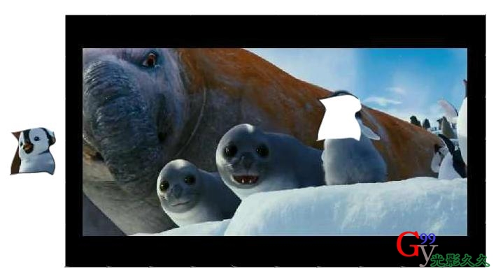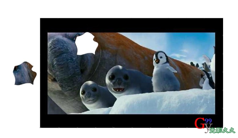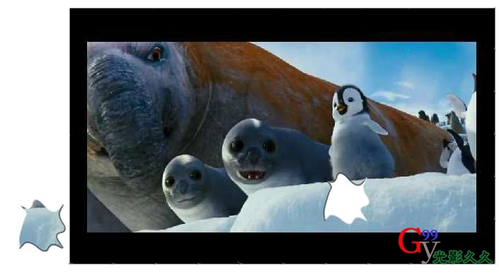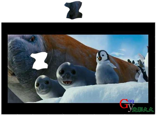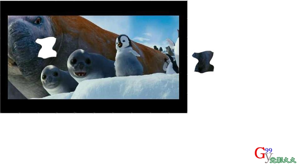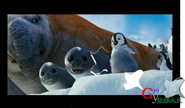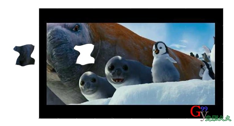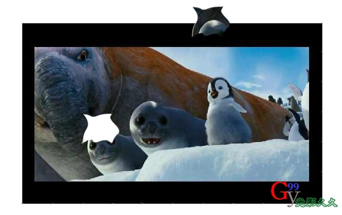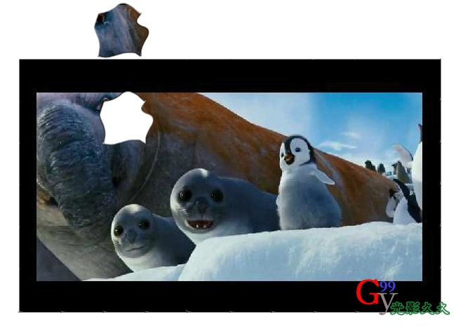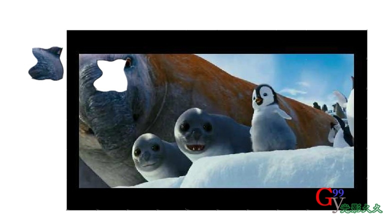跟企鵝有關的動畫, 貌似下載過 "快樂的大腳", 還沒時間看過, 所以猜上面那張是第2集, 下面那張是第一集. 然後剛剛發圖上來時才發現拚的時候眼睛有點花, 倒數第2片沒放到定位上, 這樣不會扣分吧.