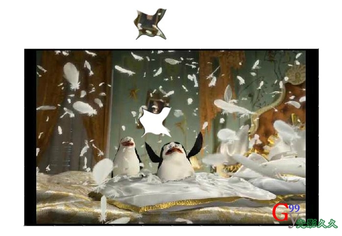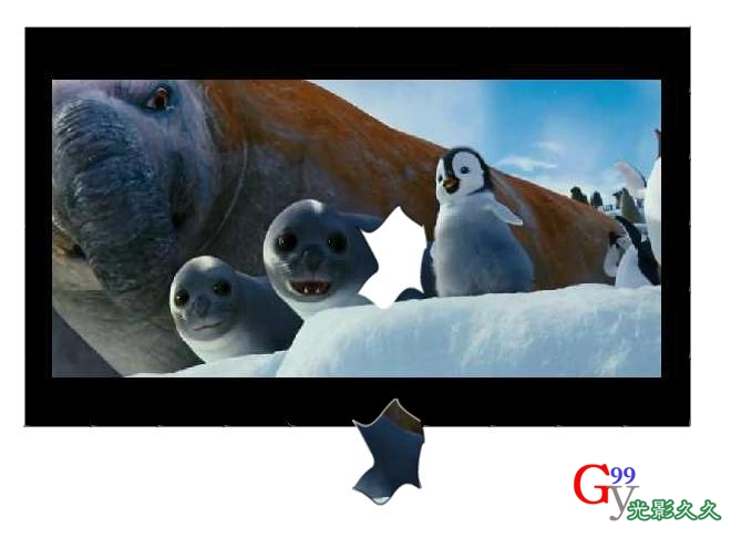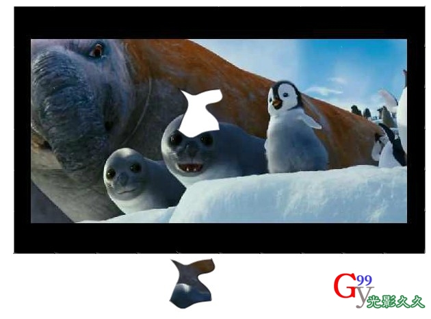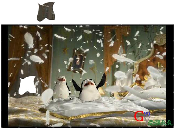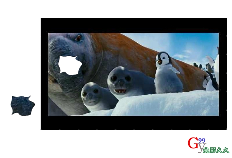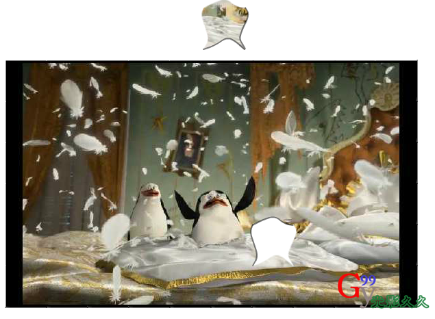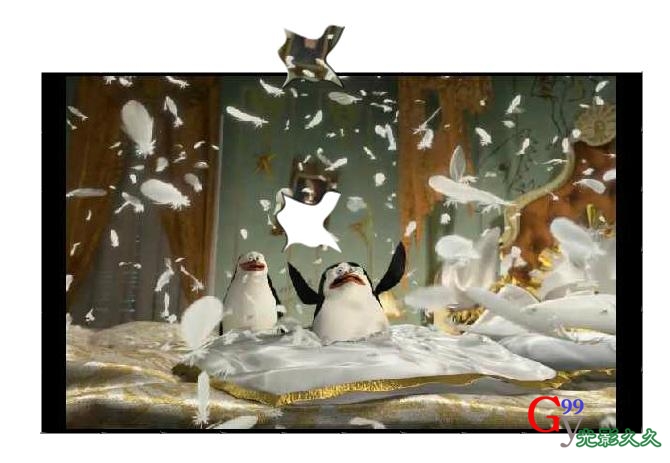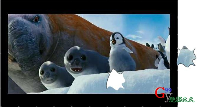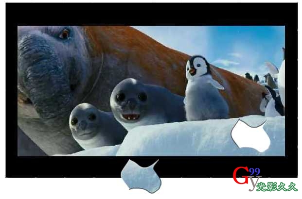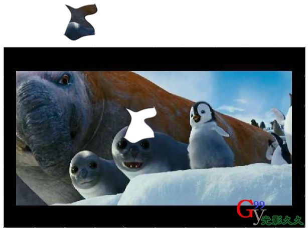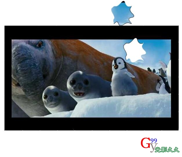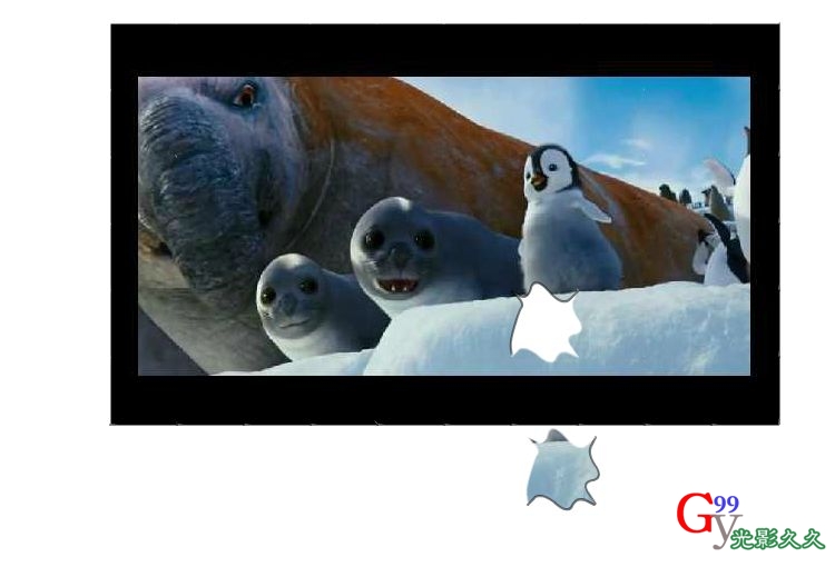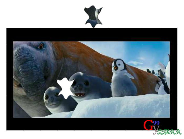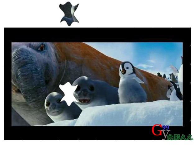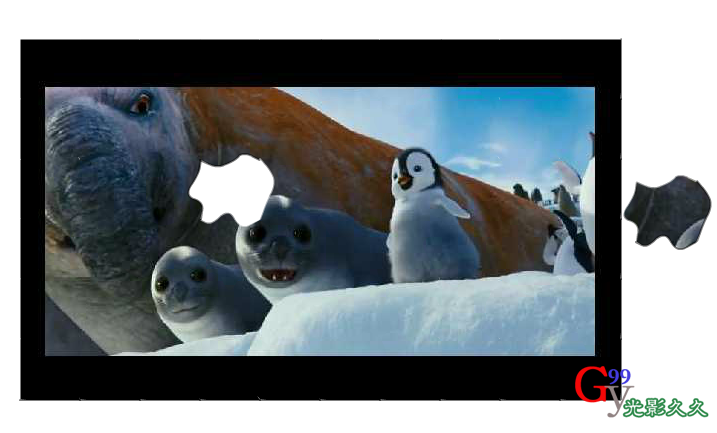 跟企鵝有關的動畫, 貌似下載過 "快樂的大腳", 還沒時間看過, 所以猜上面那張是第2集, 下面那張是第一集. 然後剛剛發圖上來時才發現拚的時候眼睛有點花, 倒數第2片沒放到定位上, 這樣不會扣分吧.
