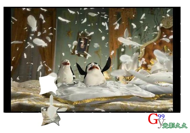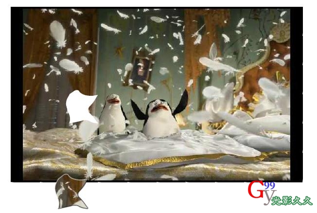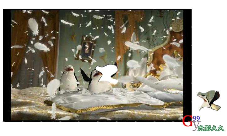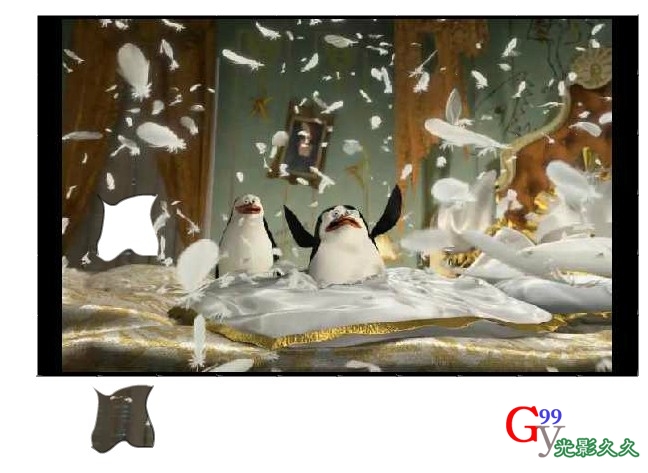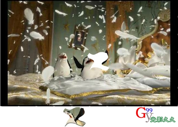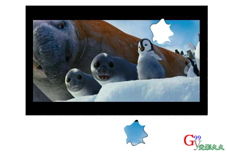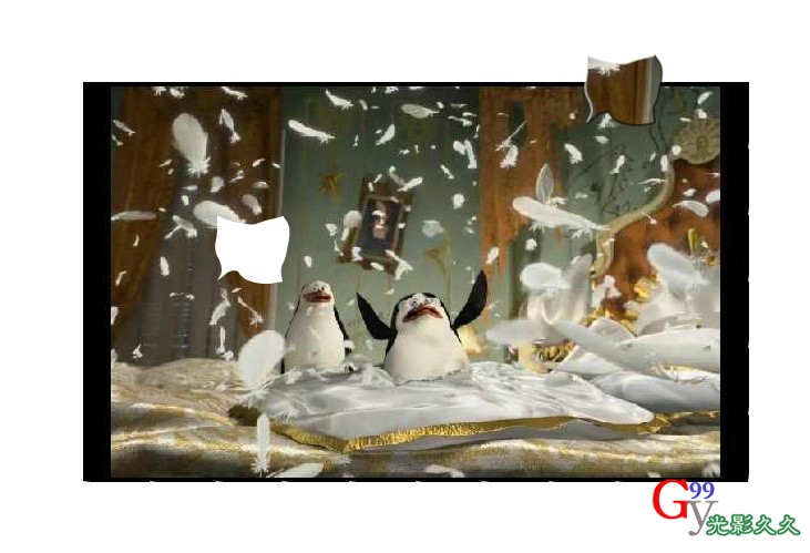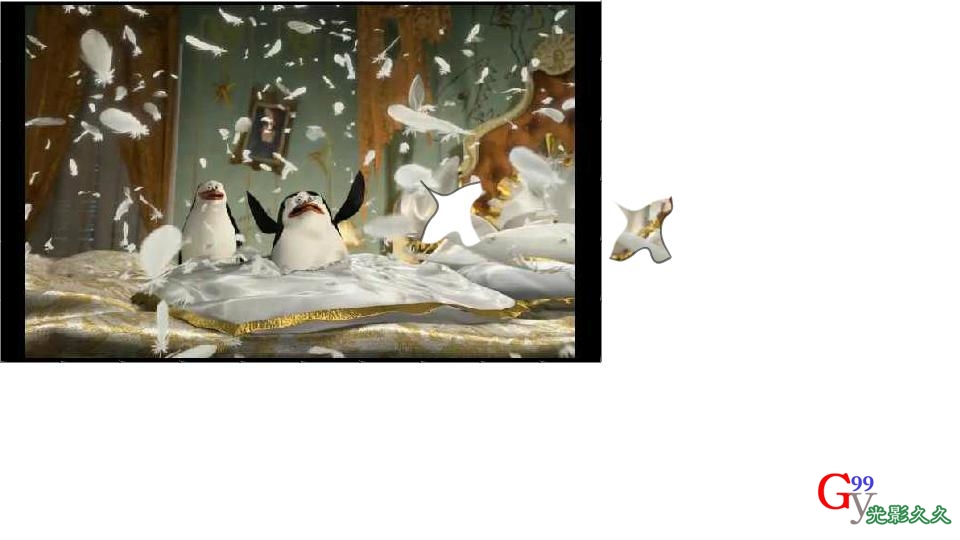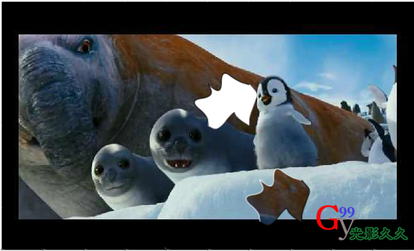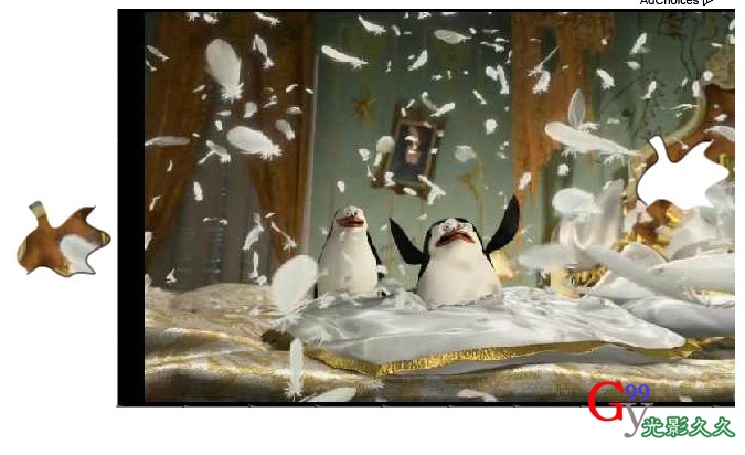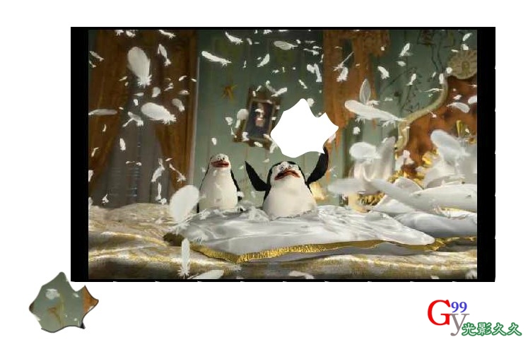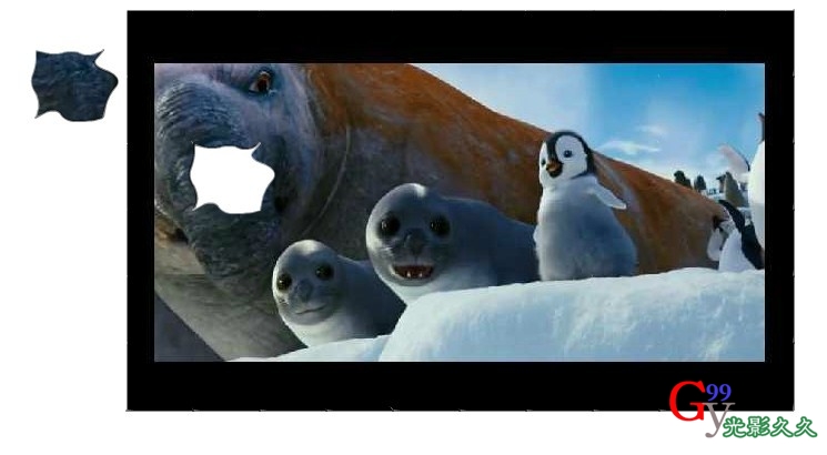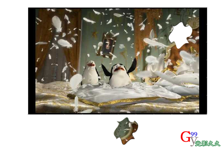 跟企鵝有關的動畫, 貌似下載過 "快樂的大腳", 還沒時間看過, 所以猜上面那張是第2集, 下面那張是第一集. 然後剛剛發圖上來時才發現拚的時候眼睛有點花, 倒數第2片沒放到定位上, 這樣不會扣分吧.