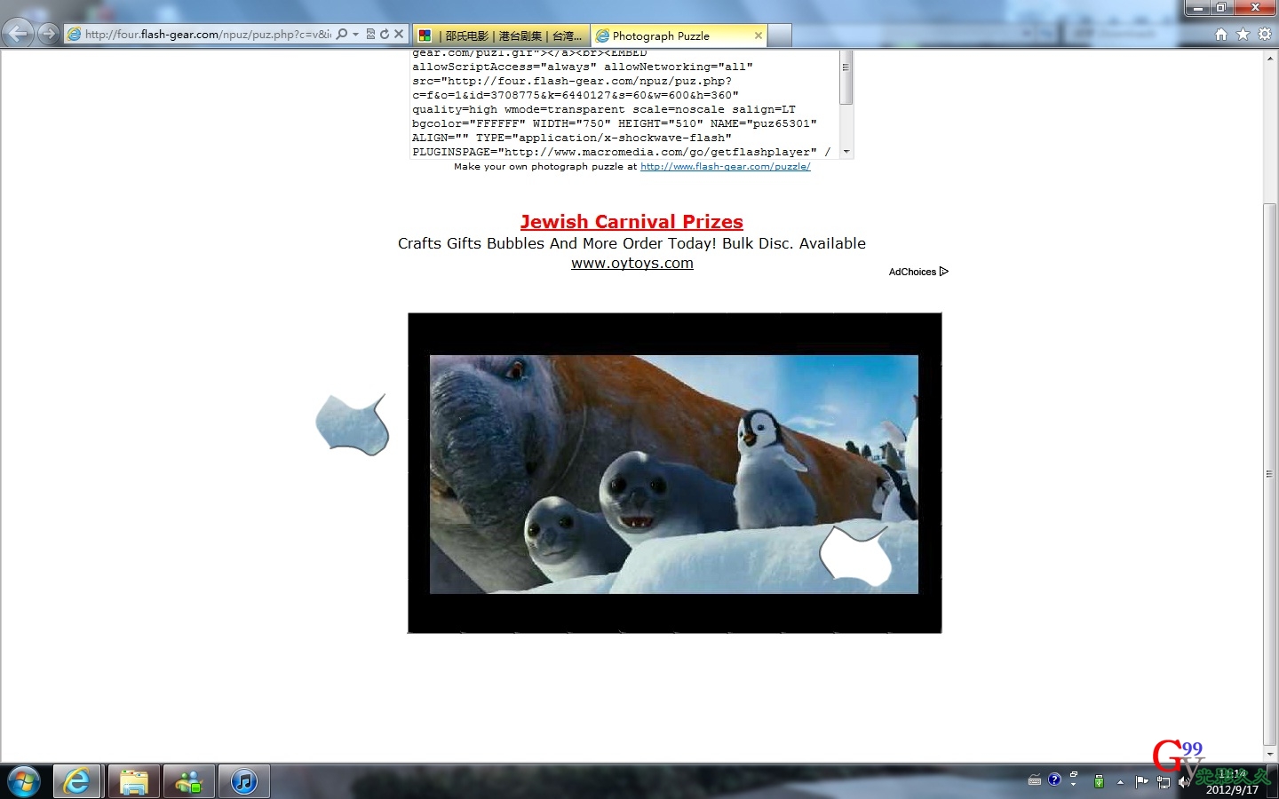 1. 完成上面网址的拼图,保留最后一片不要拼,然后截图上传并回答照片中的電影名(沒註明第幾集者,一律給一半的分數)