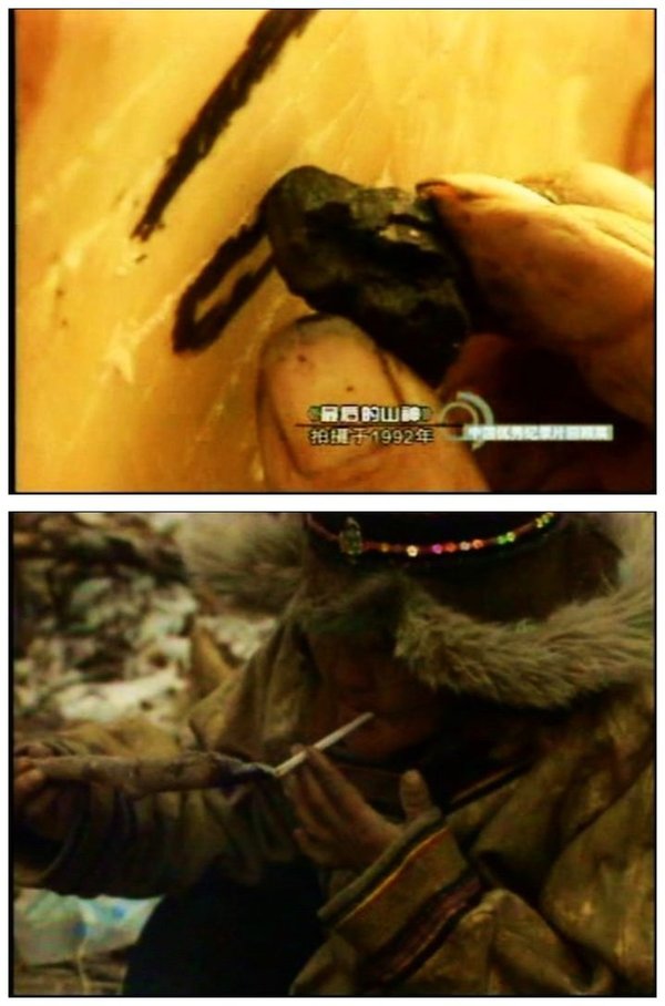 本片最成功的,无疑是在它在光的拍摄上。纵贯全片,逆光的利用可以说是全片的主体光影基调。摄影师通过大量的逆光来表达出那种逝去文化的落寞。比如孟金福在夕阳下跳的萨满舞,镜头中的唯一光源就是已落夕阳的余辉。使得孟金福老人的身影更显神秘感和孤独感。让人不得不在欣赏神奇的萨满文化的同时,体会到一种对逝去文化的悲哀之情;再比如当孟金福老人见到一棵刻着山神的松树被砍伐时,整个镜头都笼罩在一种沉重的基调中。孟金福的脸上也充满了阴霾。正如此时的画外音所说,“有一种自己被砍伐了的感觉。”仿佛山神真的已经抛弃了自这里。
