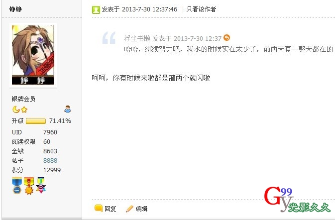 笨蛋的礼物 发表于 2013-8-17 17:55 一般坚持到水王的都冲击传奇的了·~所以现在只有你一个是水王的~~~物以稀为贵哦~~~