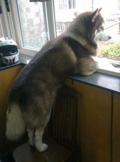 这狗狗好可怜啊,自己被关在屋里,不能出去玩啊
