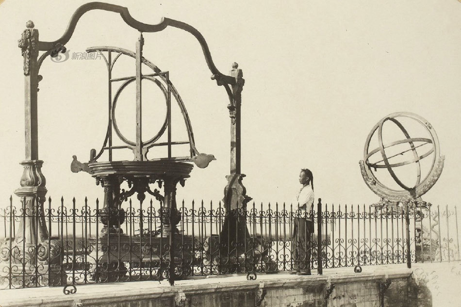 还是不看镜头,拍摄对象站在北京古观象台上。古观象台建于1442年,是明清两代的皇家天文台,清朝时曾得到传教士的技术支持。1900年八国联军侵入北京,德、法两国侵略者曾把观象台上的仪器掠走,后来陆续归还。