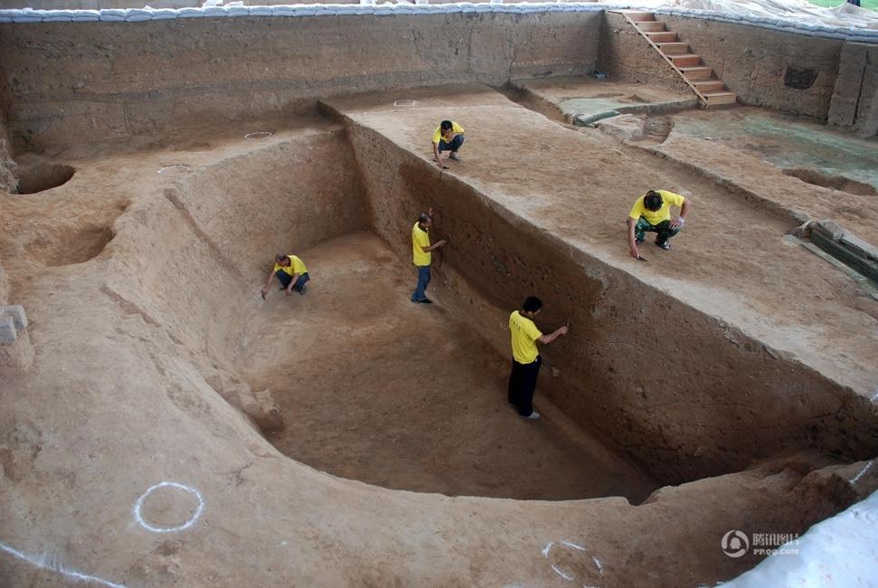 河南隋代黎阳仓的一个仓窖正在最后清理中。