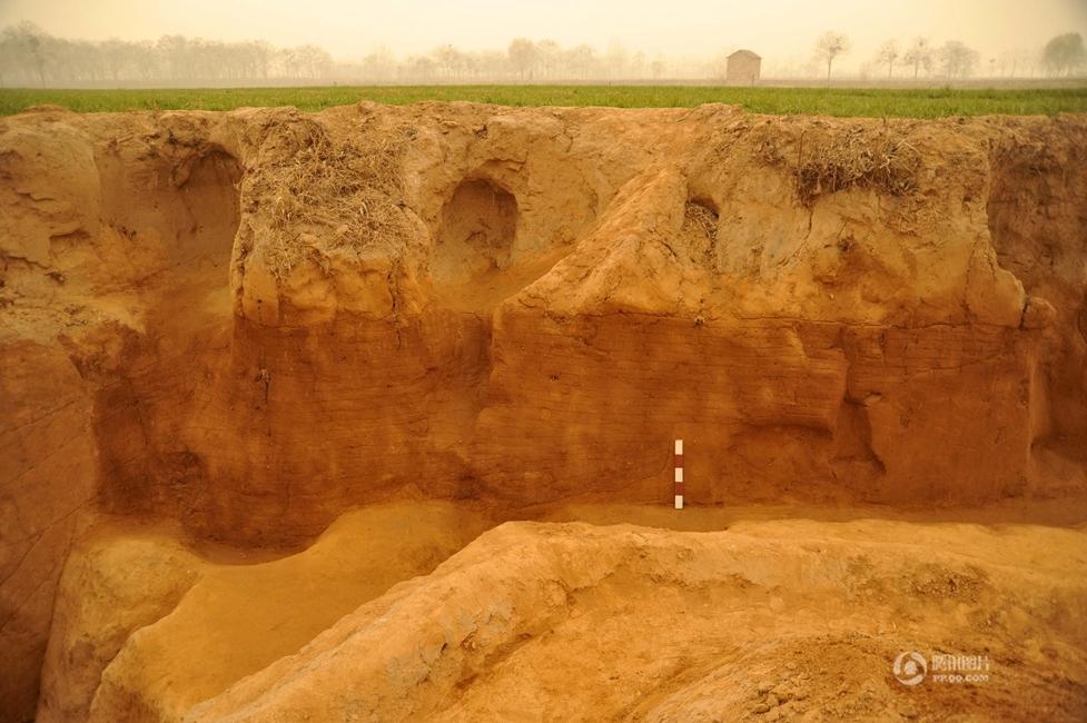 河南郑州东赵遗址的二里头时期城址(东赵中城)城墙剖面。