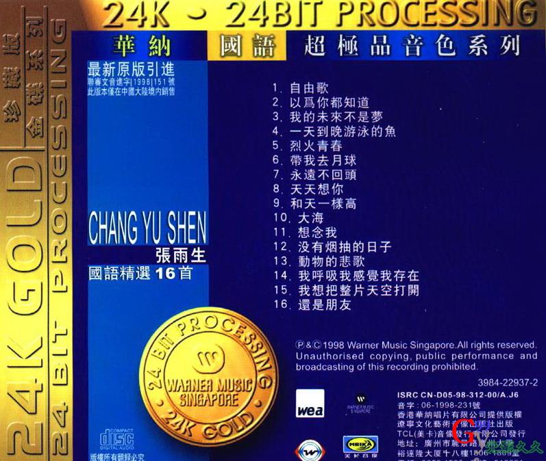 张雨生《国语精选16首》华纳国语超极品音色系列(珍藏版·金碟系列)