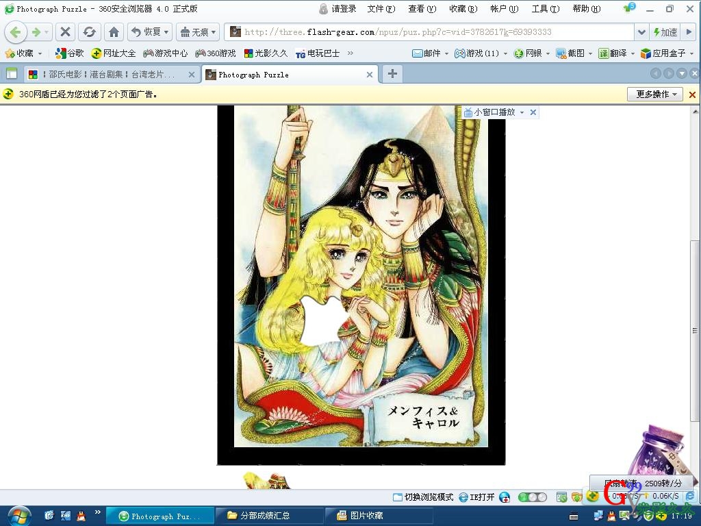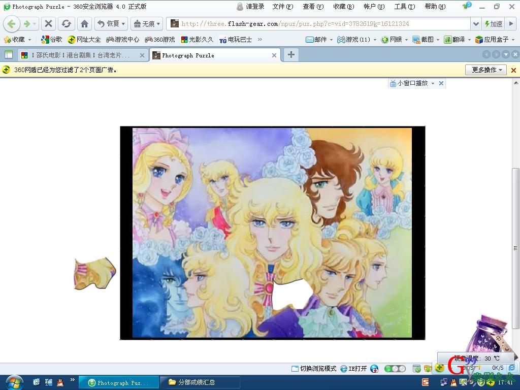 1. 完成上面网址的拼图,保留最后一片不要拼,